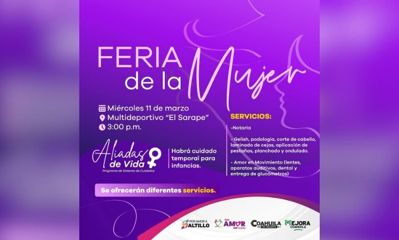 La Feria de la Mujer contará también con donación de plantas, adopciones, vacunas y desparasitación de seres sintientes; entrega de libros y talleres; y personal de Aguas de Saltillo para atender a la ciudadanía.